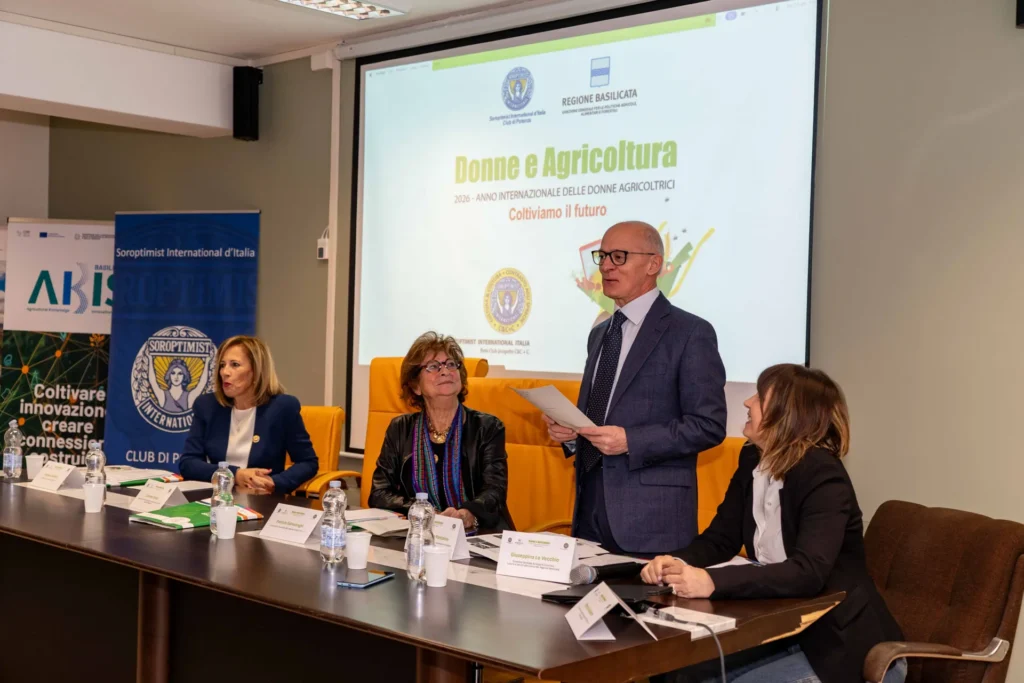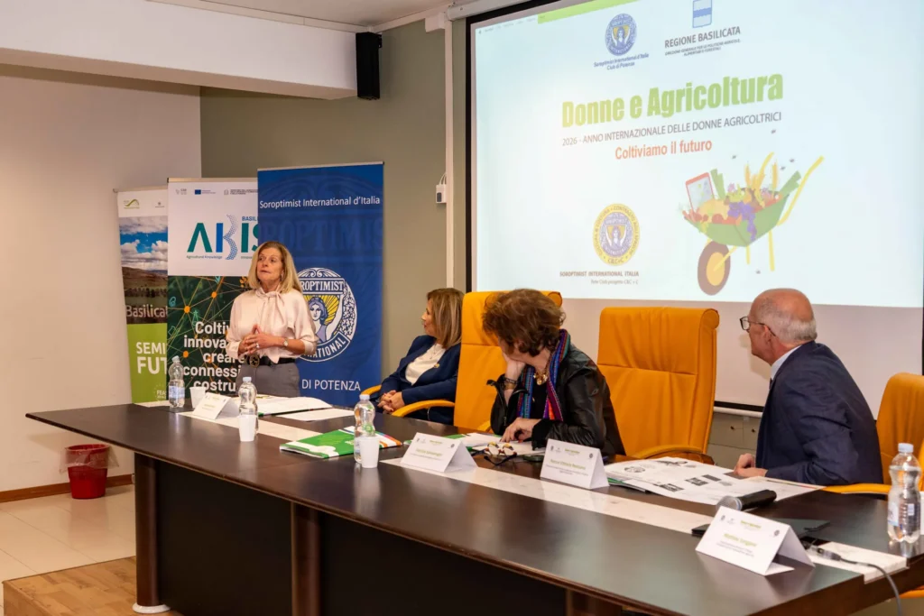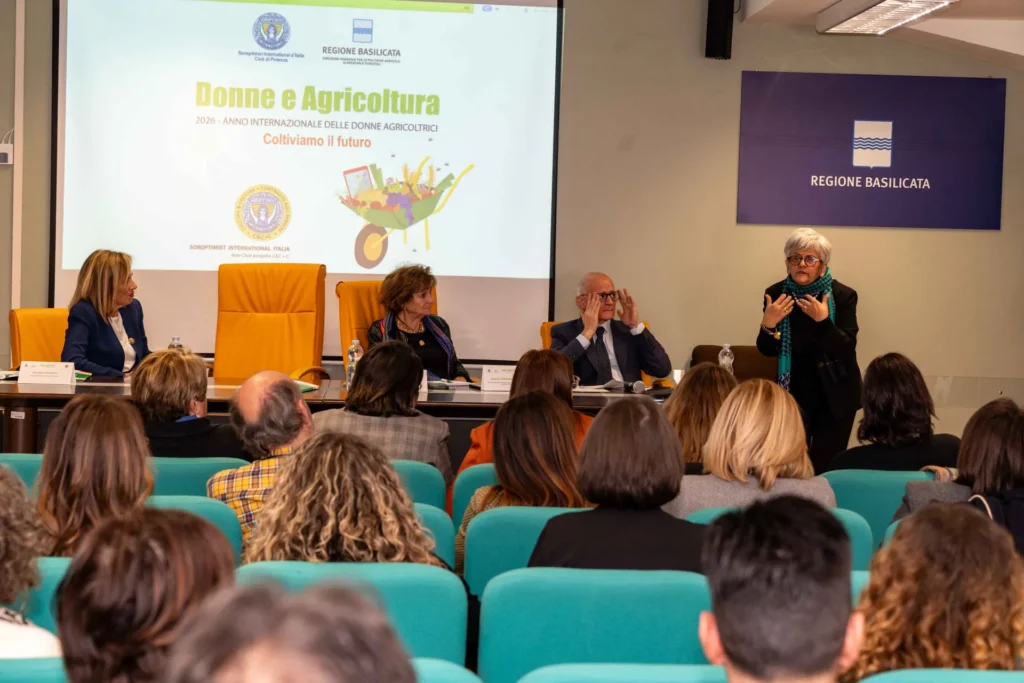 Potenza, 18 dicembre 2025 – La Sala Basento della Regione Basilicata ha ospitato l’incontro Donne e Agricoltura. Coltiviamo il futuro, promosso dal Soroptimist Club Potenza in collaborazione con la Direzione Generale per le Politiche Agricole, Alimentari e Forestali della Regione Basilicata, nell’ambito del progetto di rete C&C + C del Soroptimist International d’Italia, in vista del 2026 – Anno Internazionale delle Donne Agricoltrici.